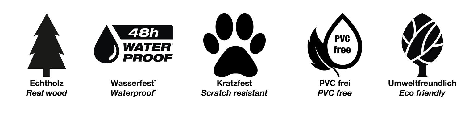Life. Echtholz-Böden für Ihr Zuhause. Zurück zur Natur – mit der unvergleichlichen Wärme und Behaglichkeit von Holz. Echte Holzoberflächen in warmen Naturtönen mit einer tiefen, matten Haptik. Böden die nicht nur optisch ein Highlight sind. Sie sind wasserfest und bieten 48 Stunden Feuchteschutz. Zudem sind sie kratzfest, PVC-frei und umweltfreundlich.